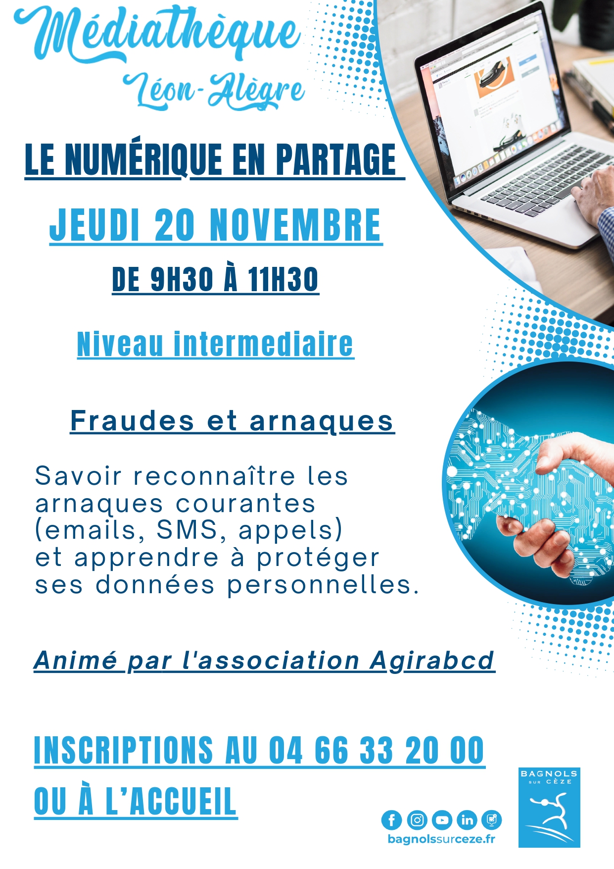 La Médiathèque organise le jeudi 20 novembre, à 9h30, un atelier de groupe de 2 heures autour du numérique. Le thème : les fraudes. L’atelier sera animé par Agir ABCD.