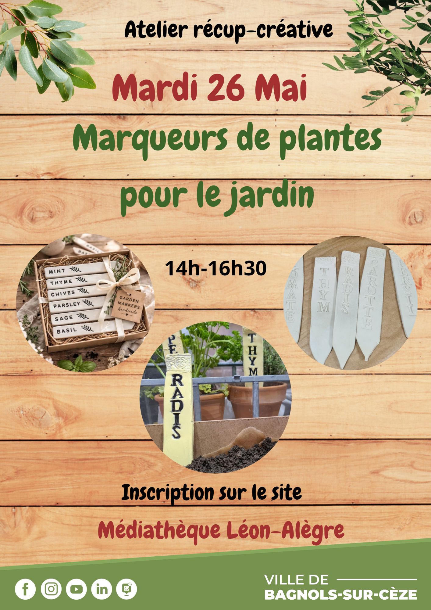 La médiathèque propose un atelier récup’, le mardi 26 mai, à 14 heures, pour apprendre à réaliser de jolis marqueurs de jardin en argile pour les plantes aromatiques ou les plantations.