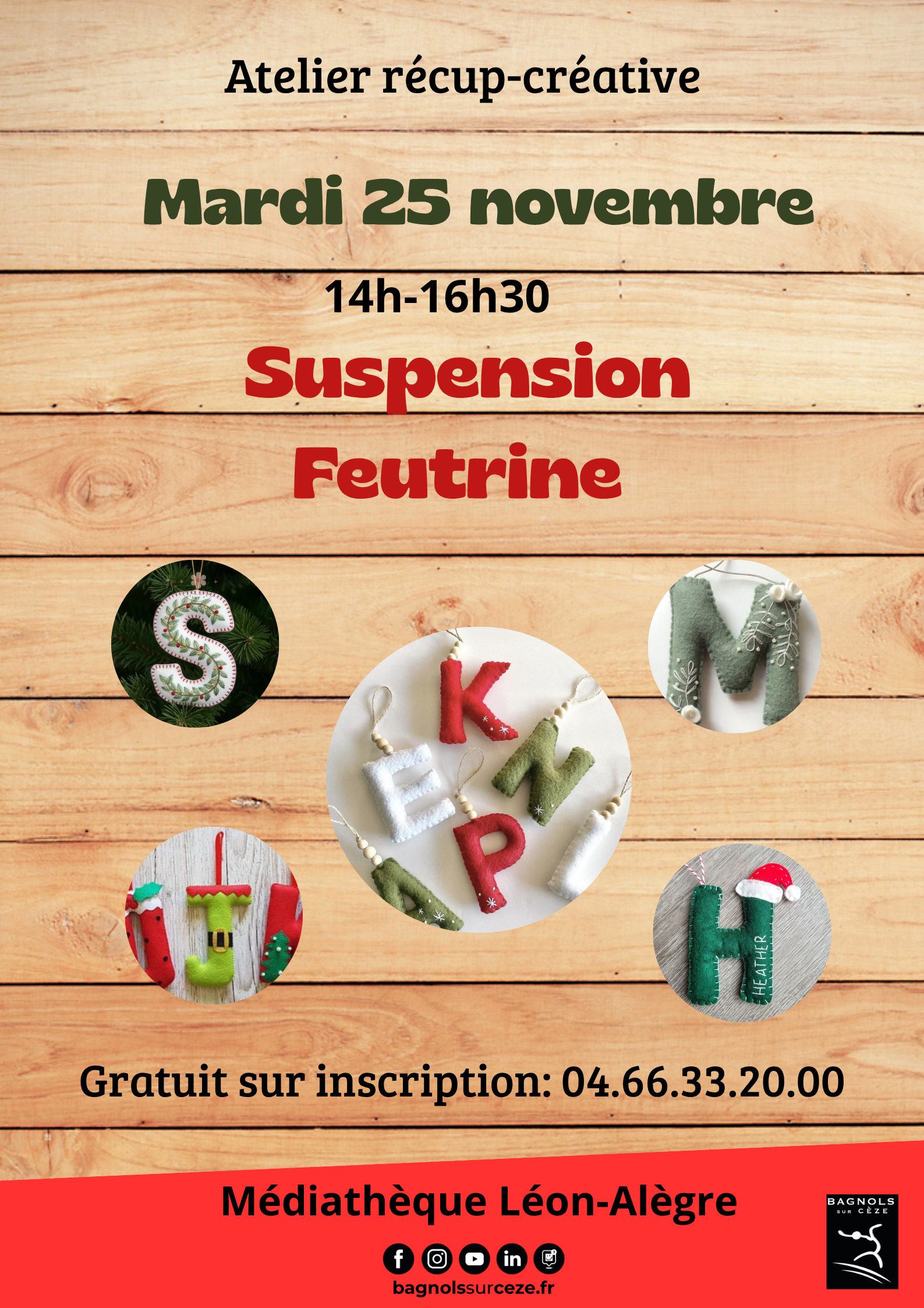 La Médiathèque organise le mardi 25 novembre, à 14 heures, un atelier gratuit pour créer ses décorations de Noël.