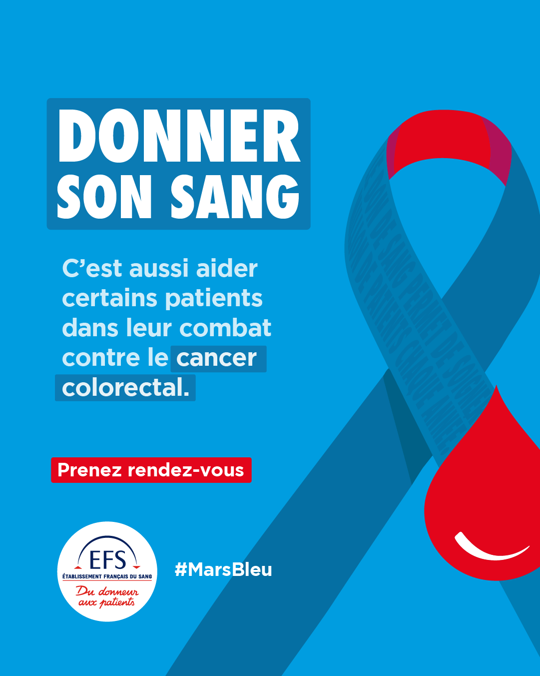 En mars, l’Établissement Français du Sang met le bleu à l’honneur pour sensibiliser au cancer colorectal : les dons sont essentiels pour soutenir les patients dans leur combat.