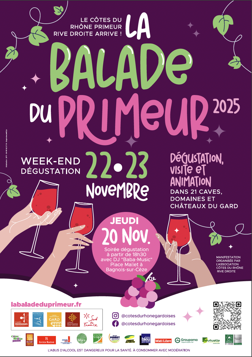 Le jeudi 20 novembre, l’association des côtes du Rhône rive droite organise une soirée dégustation du primeur à partir de 18h30.