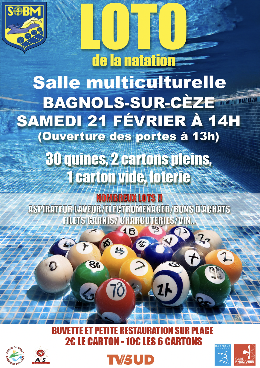 Vivre à Bagnols  v   Vie culturelle  v   L'agenda des sorties  v   LOTO DE LA NATATION