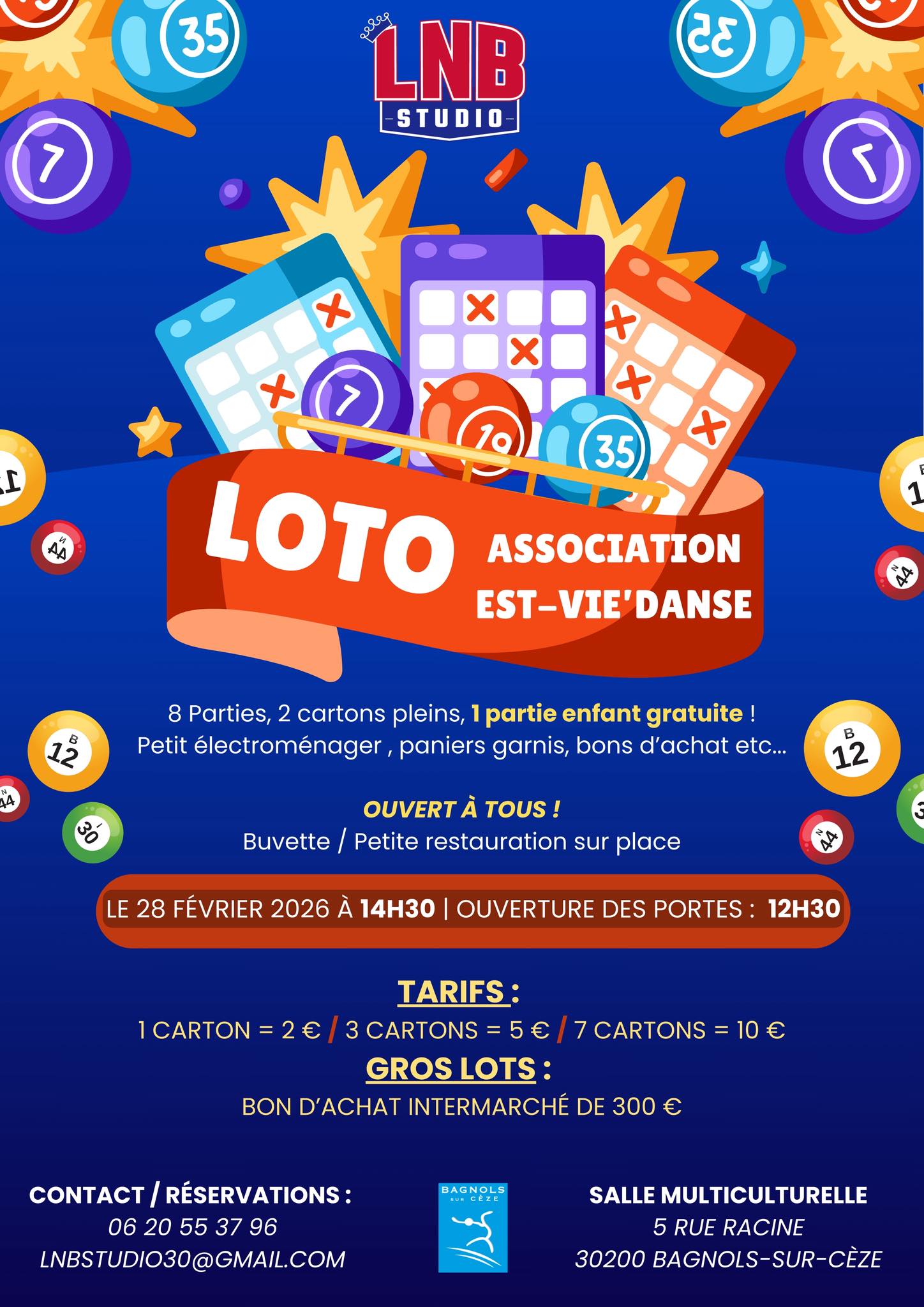 L’association Est-Vie’Danse organise son loto le samedi 28 février, à 14h30. Ouverture des portes 12h30.