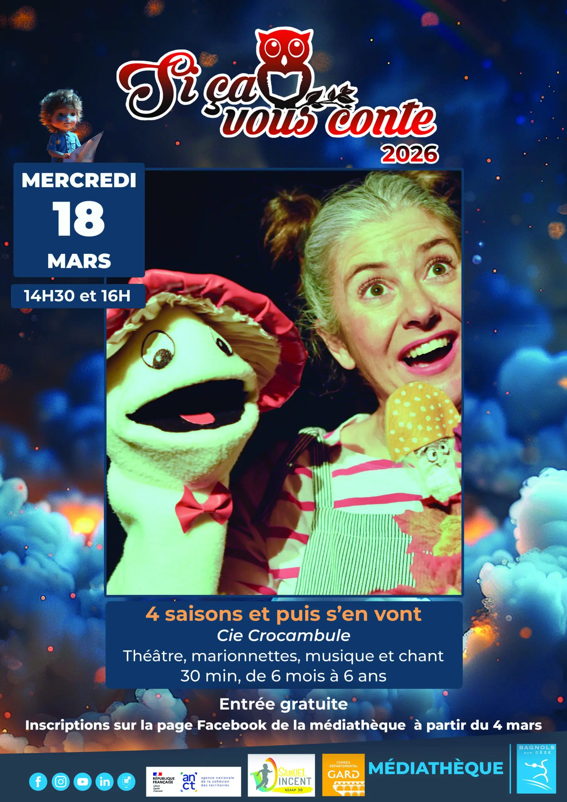 Inscription sur la page Facebook de la médiathèque, à partir du 4 mars.